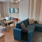 Along with comforts like an iron and ironing board, the interior also provides guests with a flat-screen TV with satellite channels. This apartment is also furnished with a sofa set and a writing table. Beds fitted with non-allergenic pillows are at guests' disposal. A bathroom has a separate toilet and a shower, as well as a hairdryer and bath sheets.